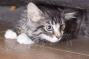 Freddie ist der jüngste der "Sieben Zwerge", er kam im August 2008 zu uns. Grund für diesen Neuzugang war, dass wir uns dachten, dass unser Ozzie unbedingt einen kleinen Spielkameraden haben sollte. Er war zu der Zeit ja unser "Jüngster" und fand mit seinem Spieltrieb nicht so rechten Anklang bei den "Großen". Deshalb gingen wir wie üblich ins Bielefelder Tierheim und wurden dort gleich mit einem Handyfoto von Freddie konfrontiert. Was wir dort sahen, einen kleinen Main Coone Kater, ließ uns die Entscheidung leicht fällen, ja, den wollten wir haben. Und wenn wir uns heute so ansehen, wie supertoll Freddie und Ozzie zusammen spielen und das Haus auf den Kopf stellen, dann war die Entscheidung goldrichtig. Wieviel Main Coone in Freddie steckt, wissen wir nicht, weil auch er ein Fundtier des Tierheims war. Aber so, wie es aussieht, steckt davon jede Menge in ihm und seinem imposanten Puschelschwanz ;)
