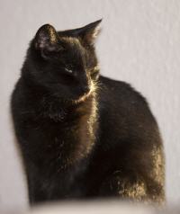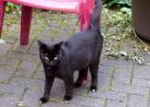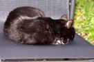 Im August 2007 entdeckten wir im Garten diese kleine schwarze Schönheit. Sie schien zu niemandem zu gehören, hatte aber offensichtlich den festen Vorsatz, uns zu adoptieren. Das hat inzwischen vorzüglich geklappt - seit Oktober 2007 teilt Miezi mit uns allen Freßnapf und Bett und ist der einzige Freigänger unserer Bande.