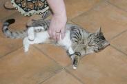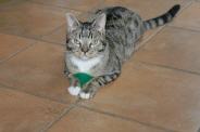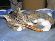 Nachdem wir unseren Jülzi leider viel zu früh verloren hatten, waren wir entschlossen, wieder einem familienlosen Kätzchen ein Heim zu geben. Und ein Besuch im Bielefelder Tierheim am 20. März 2008 bescherte uns den kleinen Ozzie, der aufgrund eines chronischen Katzenschnupfens und eines inzwischen operierten Knieproblems dringend ein Zuhause suchte. Von seinem Knieproblem merkt man heute nichts mehr, wenn er wie ein Irrwisch durchs Haus tobt, aber seinen Schnupfen werden wir wohl leider nie richtig in den Griff bekommen. Seitdem läuft Wolfgang nie mehr ohne Tempotücher in der Tasche durchs Haus ;) Ach ja - böse Zungen behaupten übrigens, Ozzie kam zu seinem Namen, weil er mit seinem durch den Katzenschnupfen manchmal etwas eigentümlichen Blick immer etwas bekifft aussieht. Aber eigentlich wollten wir damit nur unterstreichen, dass er eine Fellfärbung wie ein kleiner Ozelot hat, unser Özzel.
