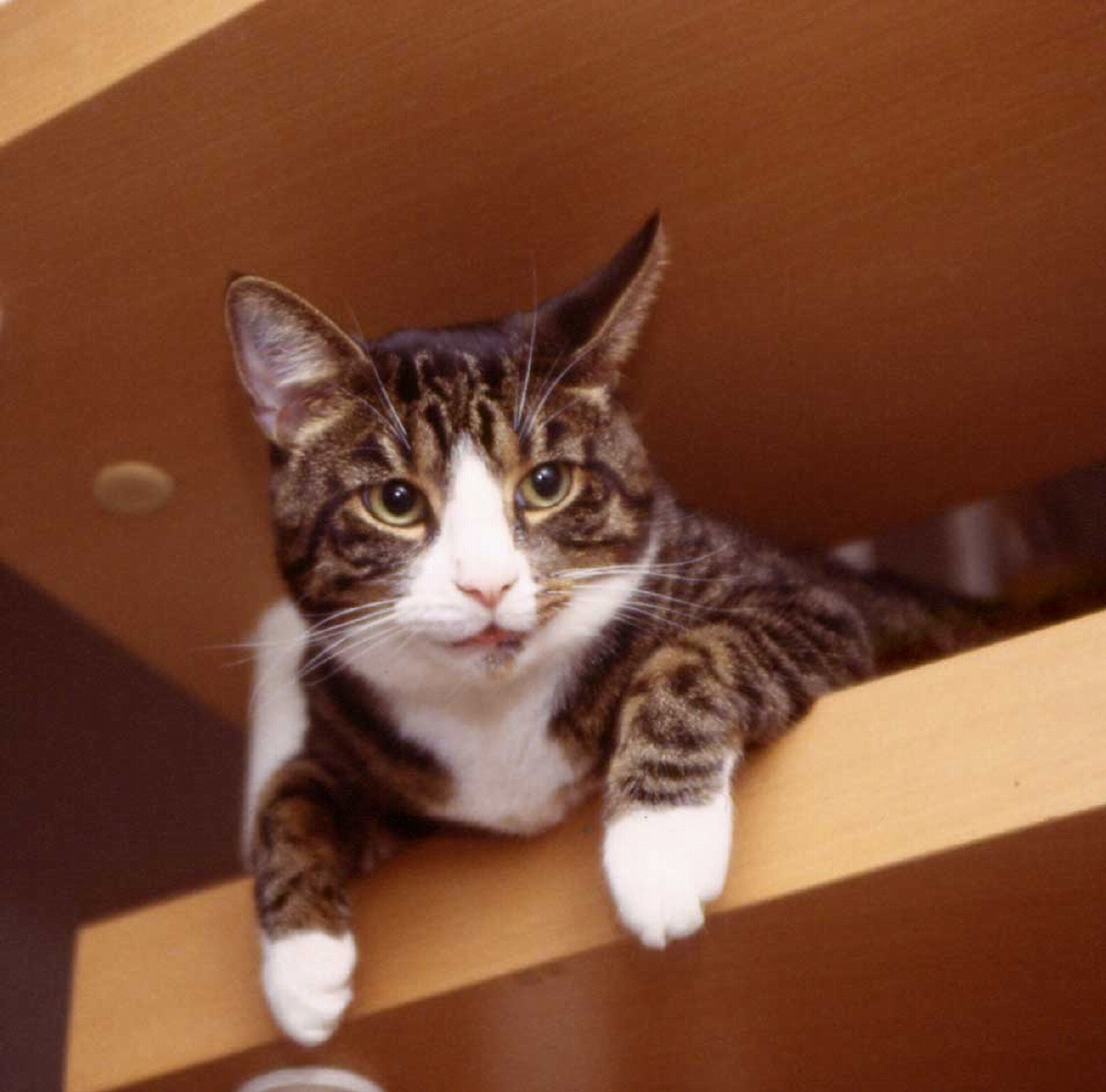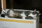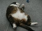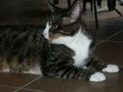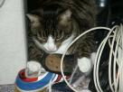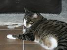 Sternchen, unser "Sozialkater" - der verträglichste und gemütlichste von allen Sternchen haben wir im Sommer 2002 auf der Internet-Seite des Tierheims Bielefeld entdeckt, da war er ca. 2 Jahre alt. Er war seinem Besitzer weggenommen worden, weil der ihn in einem Wutanfall (Sternchen war zu der Zeit nicht kastriert und deshalb unsauber) aus dem Fenster im 2. Stock geworfen hatte. Als Sterni zu uns kam, war er zum Weinen dürr, aber der freundlichste Kater, der mir je begegnet ist. Die ersten Wochen bestanden nur aus Fressen, Fressen, Fressen. Und heute? Naja, sagen wir, er hat sich figürlich seinen Dosis angepasst ;)