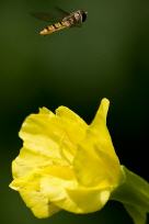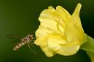Stars dieser Impressionen: die Hain Schwebfliege Episyrphus balteatus und die Blüte einer NachtkerzeKlick auf's Bild stellt die Bilder größer dar